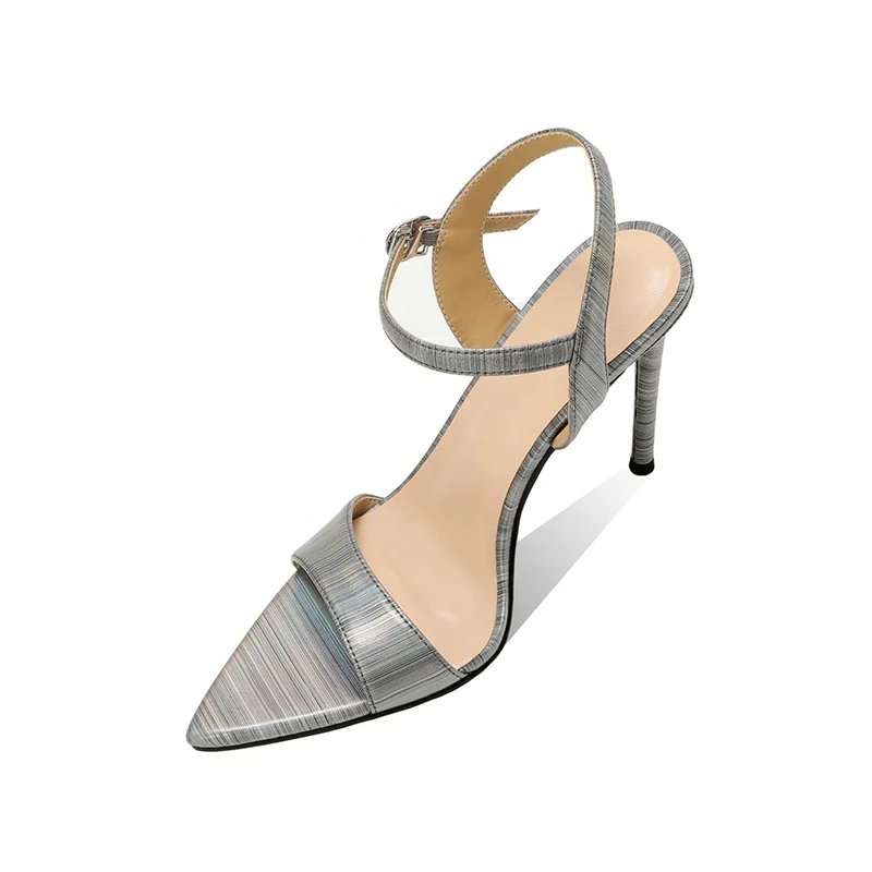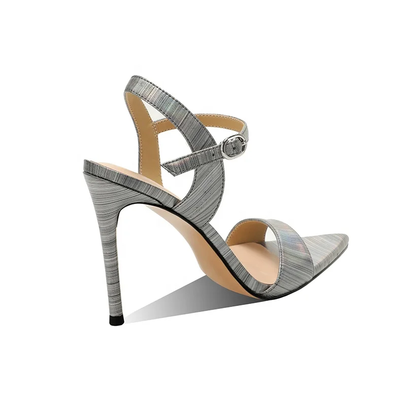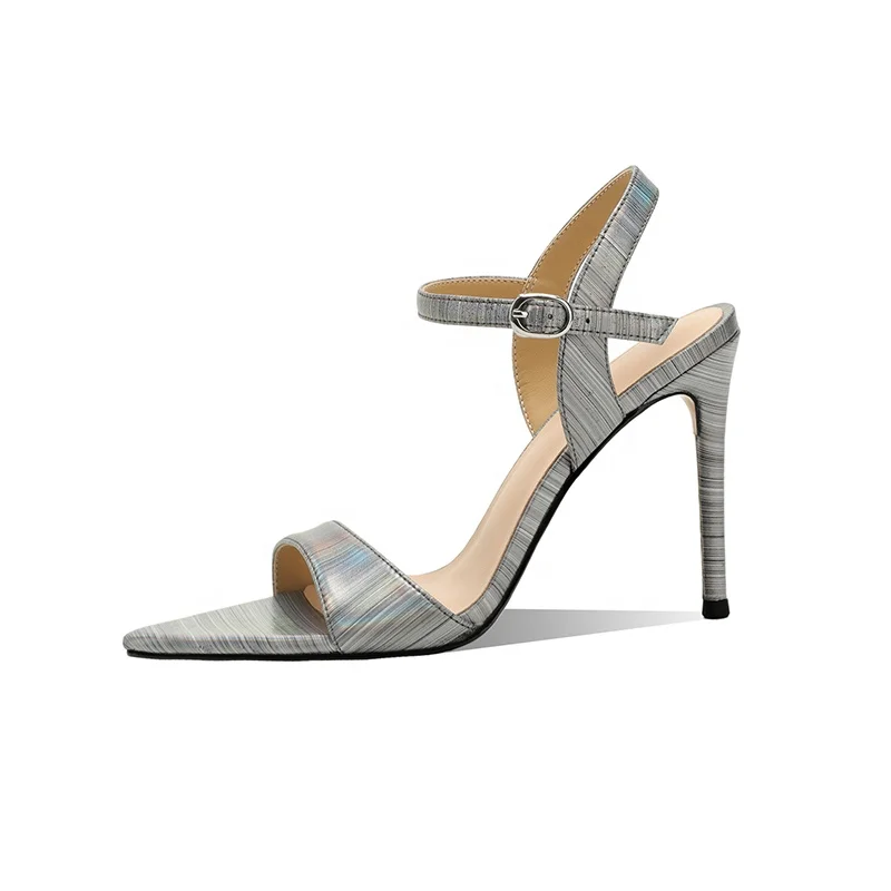 Moncheer Women's Silver Textured Pointed-Toe Stiletto Sandals with Ankle Strap | Elegant High Heels for Party & Evening